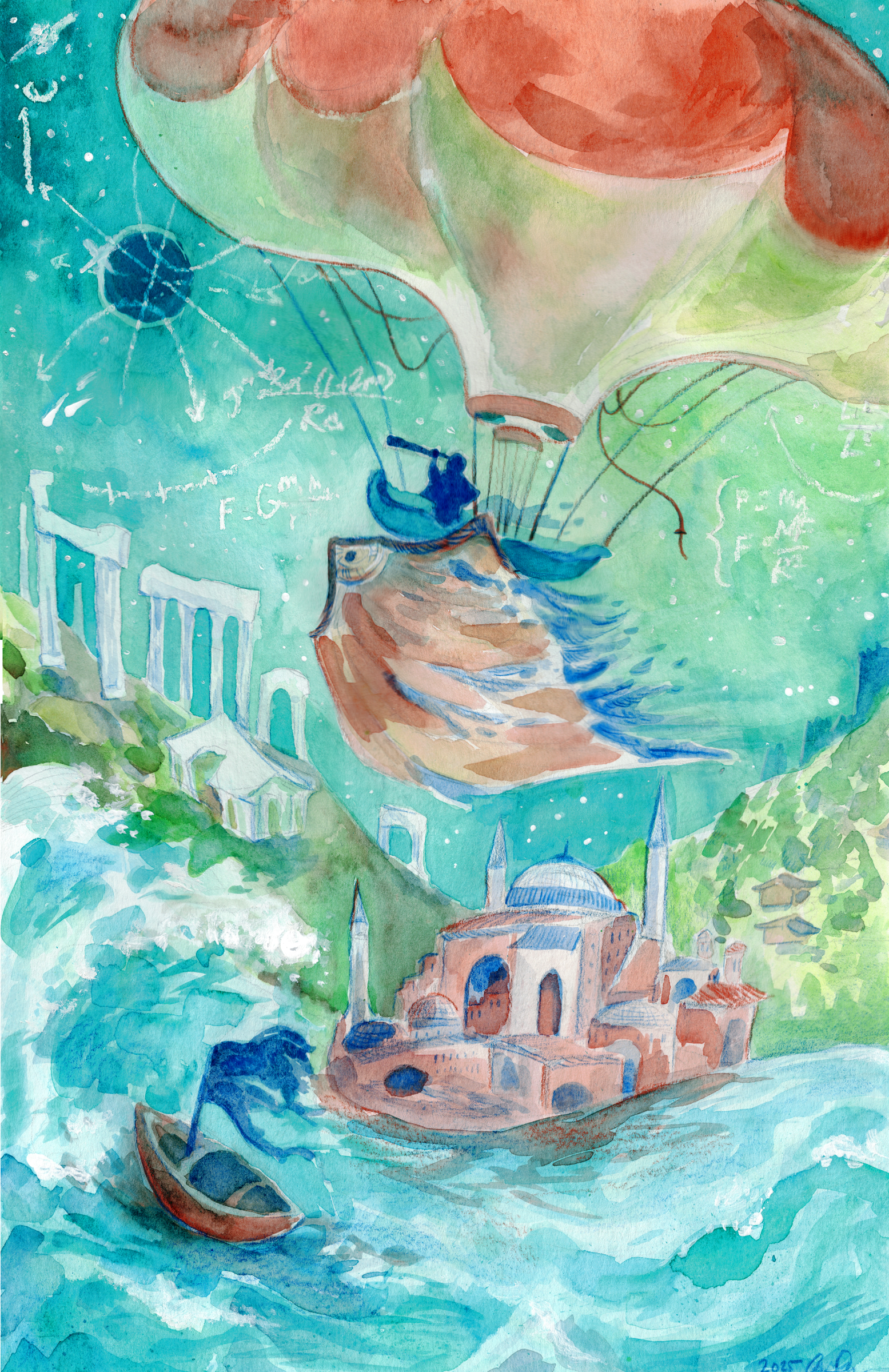 Watercolor and colored pencil, 12” x 18”.