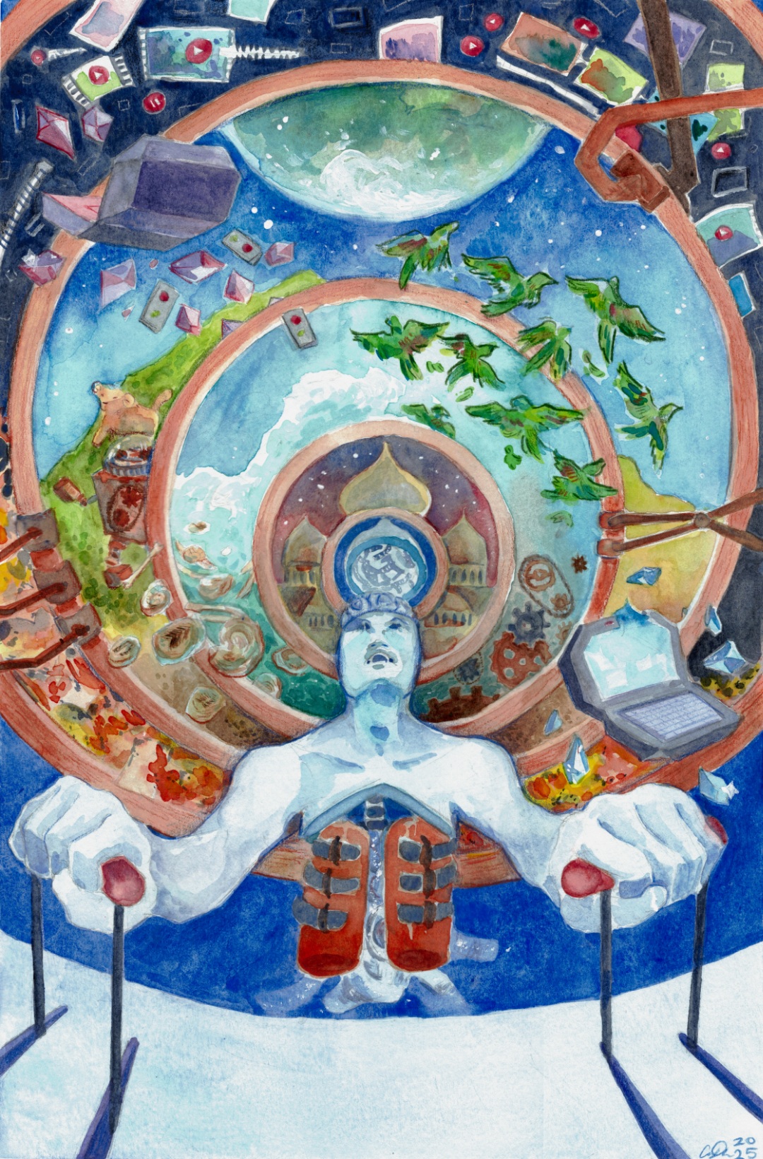 Watercolor and colored pencil, 12” x 18”