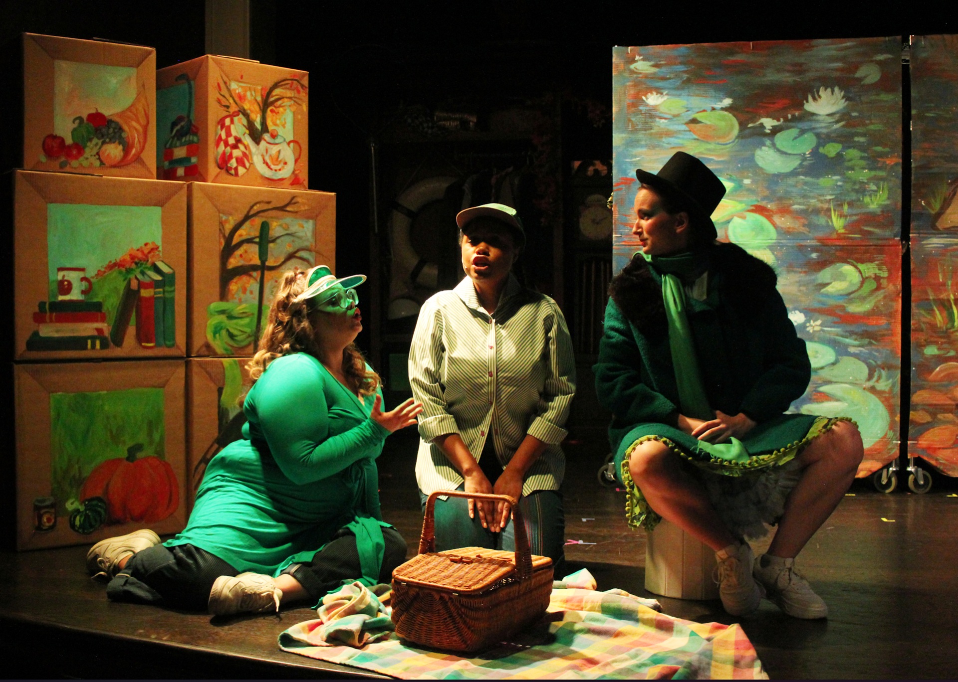 “Set pieces (especially the clothes rack), and beautiful set painting by Caroline Dinh created scenes from the middle of a pond to sledding down a snowy hill. The set design elements give the audience so much to look at, one could see it twice and still catch things that were missed the first time.” Danielle Comer via MD Theatre Guide