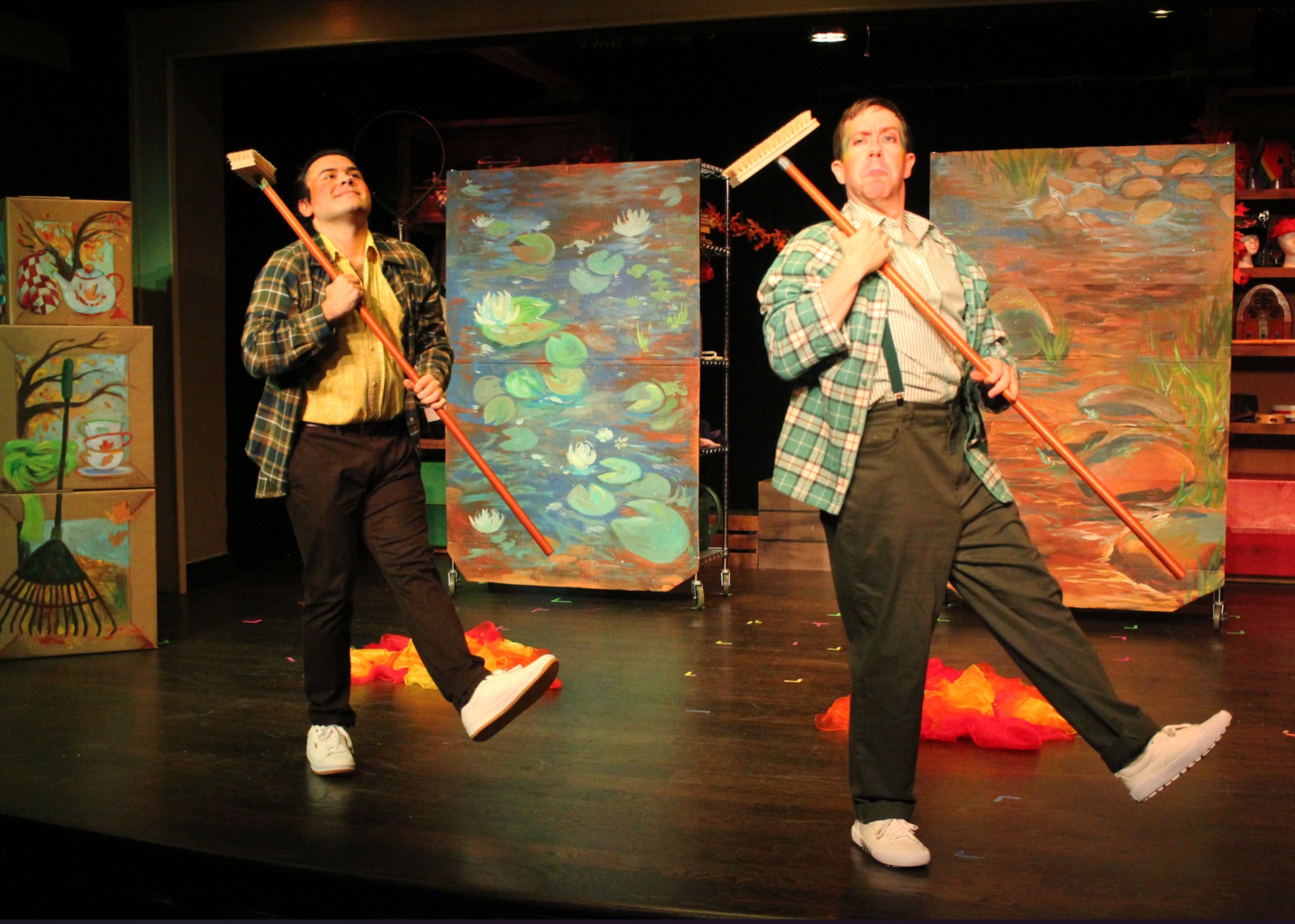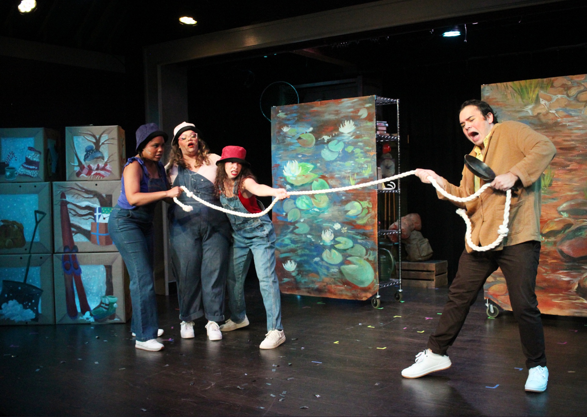 “The seasonal transitions were also cleverly handled. Scenic elements painted by Caroline Dinh featured cardboard boxes with different seasons on each side, rotated by the cast to mark time passing.” Lucille Blumberg via TheatreBloom